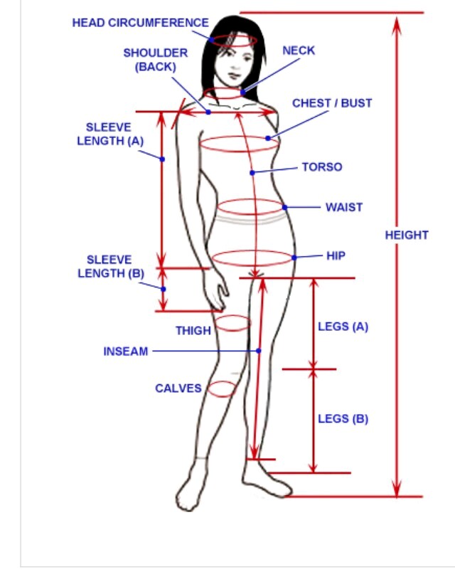 To make any garment let it be a regular wear dress or a costume, the most important is the pattern. To make a perfect outfit we need to take perfect measurements and to take perfect measurements we need to have atleast basic knowledge of the areas where to take measurements that is the length and the circumference. So here is the image shared to have the basic idea needed to know..